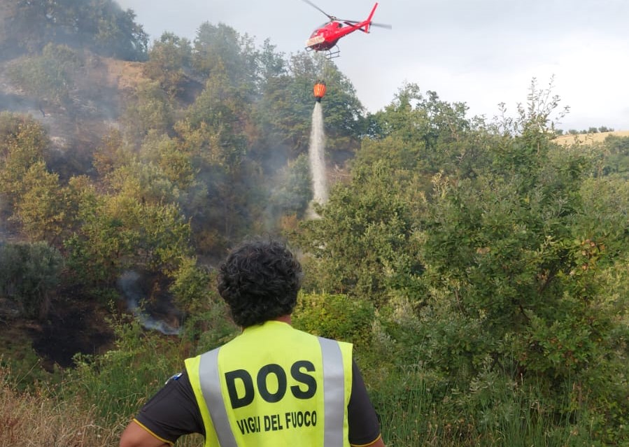 L’incendio si è sviluppato su tre fronti di fuoco ed è attualmente sotto il coordinamento di un Direttore delle Operazioni di Spegnimento. Operano sul posto squadre dei Vigili del Fuoco e della Protezione Civile, supportate da due elicotteri dei Vigili del Fuoco e da un Canadair inviato dal COAU.