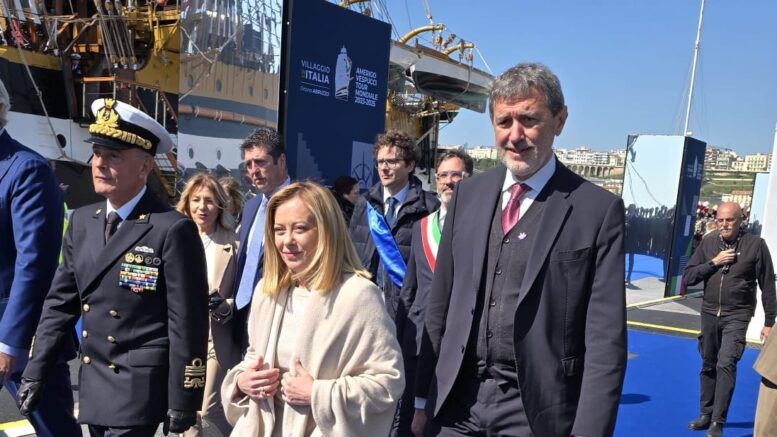 Da oggi la nave scuola Amerigo Vespucci è al porto di Ortona, dove è arrivata anche la premier Giorgia Meloni, intervenuta sui dazi: “Preoccupazione, ma non catastrofismo”