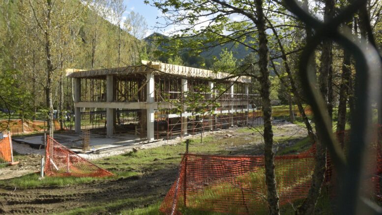 Un edificio in costruzione a Opi, lungo il fiume Sangro, all’interno del Parco nazionale d’Abruzzo, Lazio e Molise: il Forum H2O chiede lumi