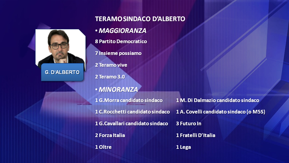 In caso di vittoria di Gianguido D’Alberto, il consiglio comunale sarebbe questo: