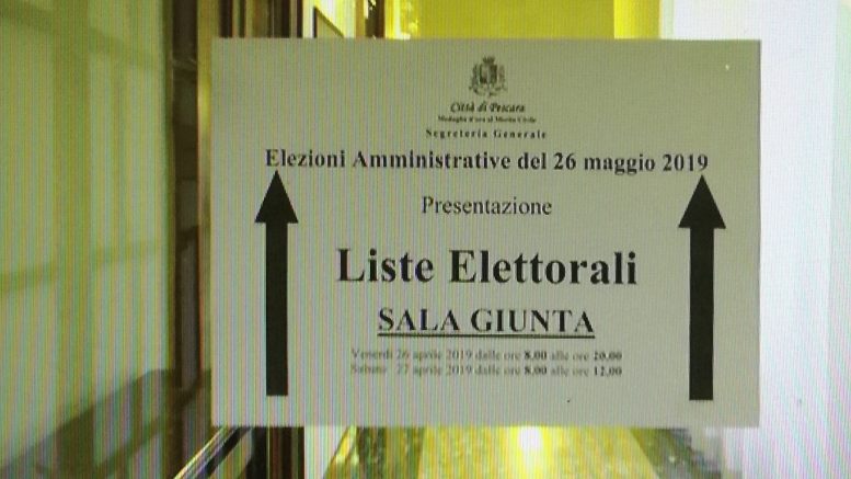 Ultime ore, quindi, per la sottoscrizione delle liste da parte dei cittadini elettori. Sono obbligati a raccogliere almeno 350 firme coloro che presentano liste civiche o di partiti politici non rappresentati in Parlamento. La prima lista ad essere presentata, ha dichiarato al Tg8 il Segretario Generale del Comune di Pescara Carla Monaco, quella Scegli Pescara con candidato sindaco Gianni Teodoro, subito dopo la lista Casa-Pound che candida a sindaco Mirko Iacomelli. Il grosso del lavoro è atteso per la giornata di domani. Una volta acquisite tutte le liste l’ufficio competente allestito presso la Sala Giunta di Palazzo di Città trasmetterà tutto il materiale alla Commissione Elettorale. Una volta valutata la validità si procederà all’estrazione per il posizionamento dei simboli e delle liste con i candidati a sindaco sulla scheda elettorale. Fra trenta giorni, domenica 26 maggio, si torna alle urne per eleggere i nuovi sindaci in 99 Comuni abruzzesi tra cui Pescara, Montesilvano e Giulianova, con più di 15 mila abitanti dove è previsto l’eventuale turno di ballottaggio. Ed i parlamentari europei della Circoscrizione Meridionale, di cui l’Abruzzo è solo una piccola parte del territorio interessato assieme a Campania, Calabria, Basilicata, Molise e Puglia. E’ qui che saranno scelti i 15 eurodeputati del Sud (isole escluse) da mandare a Bruxelles.