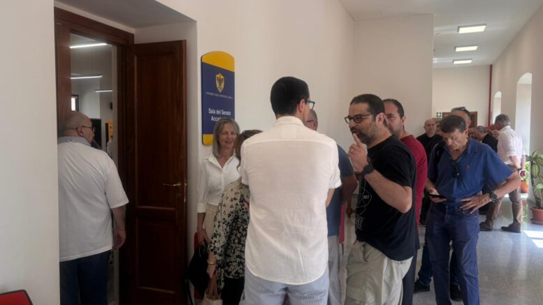 Tantissime persone in fila per votare sin dall’apertura del seggio. Votano docenti, ricercatori, rappresentanza degli studenti e personale tecnico amministrativo.