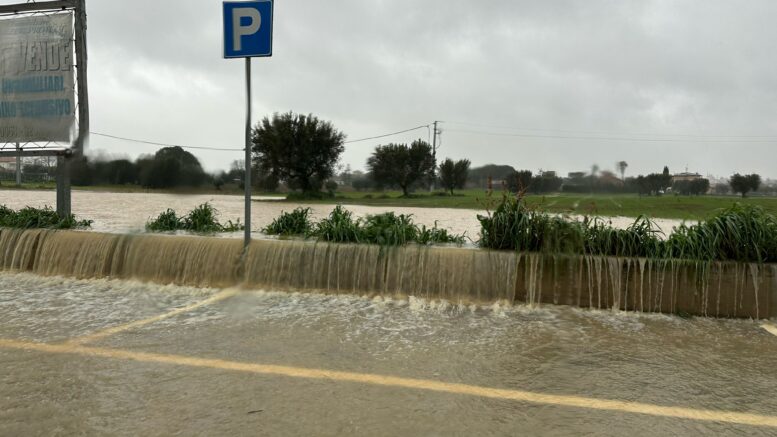 La foto che vi mostriamo ci giunge da Villa Pozzoni a Giulianova, in apparenza sembra l’esondazione di un fiume, in realtà è una gigantesca pozza d’acqua che si è formata e si sta riversando sulla strada. Anche in queste zone Vigili del Fuoco al lavoro per rispondere alle centinaia di chiamate.