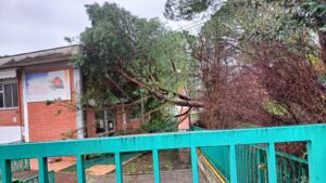 (Immagini dell’albero caduto sull’edificio scolastico dell’Asilo Nido “La Coccinella” a Teramo)