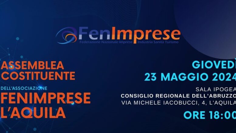Oggi pomeriggio, alle 18, nella Sala Ipogea del Consiglio regionale, all’Aquila, si terrà l’assemblea costituente di FenImprese L’Aquila. L’evento sarà trasmesso in diretta streaming sul canale Youtube di Rete8.