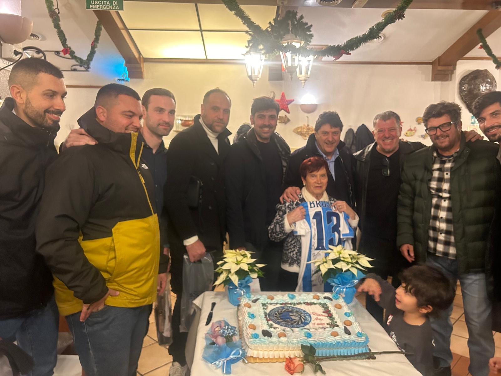 Al termine della serata, immancabile appuntamento con il taglio della torta della torta insieme agli 80 tifosi (prevalentemente donne, neanche a dirlo) presenti alla celebrazione pre-natalizia.