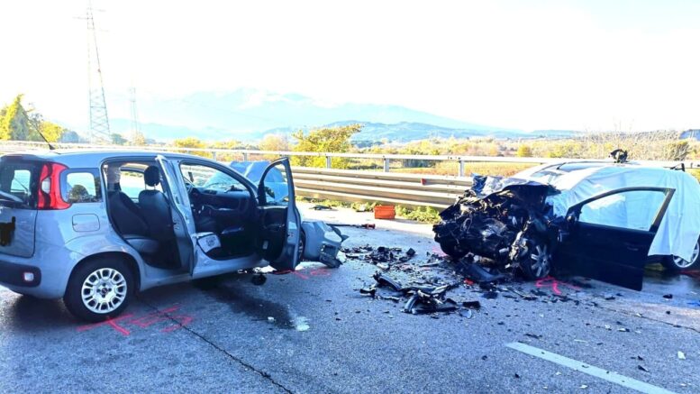 Violentissimo lo scontro frontale tra le due utilitarie, una Fiat Panda ed una Ford Fiesta. Sul posto Carabinieri, Vigili del Fuoco, ambulanze del 118. Il traffico è stato bloccato in entrambi i sensi di marcia e deviato sulla viabilità locale per consentire il lavoro dei soccorritori .