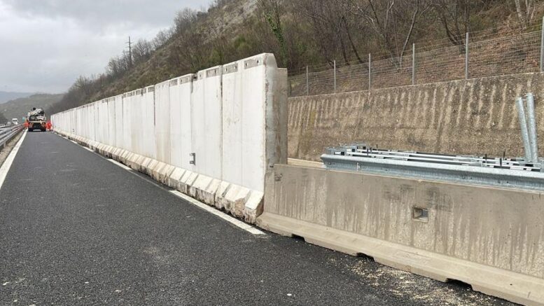 Soluzione lampo: muro di contenimento elevato nella notte. Una soluzione temporanea, in attesa che il Governo si pronunci sul destino di un’autostrada che da 10 anni attende interventi dichiarati urgenti da una Legge dello Stato.