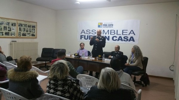 il Capitano Domenico Calore Comandante della Compagnia Carabinieri, accompagnato dal Maresciallo Francesco Ruscio, comandante della locale Stazione, nella sala polifunzionale del comune di Notaresco ha incontrato la cittadinanza intervenuta in massa . L’evento, organizzato dal Presidente della Pro Loco Dino Orgoretti, con la presenza dell’assessore Antonina Speziale, sul tema particolarmente sentito dalla popolazione riguardante i furti in casa. Durante il dibattito , il Capitano Calore ha invitato i cittadini, in particolare le categorie più a rischio, ad adottare semplici ma efficaci accorgimenti al fine di non agevolare visite indesiderate. Ha inoltre vivamente invitato tutti ad una sorta di collaborazione con le Forze dell’Ordine e con tutte le Istituzioni al fine di rendere ancor più efficace la prevenzione sul territorio. Il tema ha favorito un vero e proprio dibattito nel quale le persone hanno raccontato esperienze vissute, timori, senso di sfiducia, chiedendo chiarimenti sull’uso delle armi, fortemente scoraggiato dal comandante Calore.