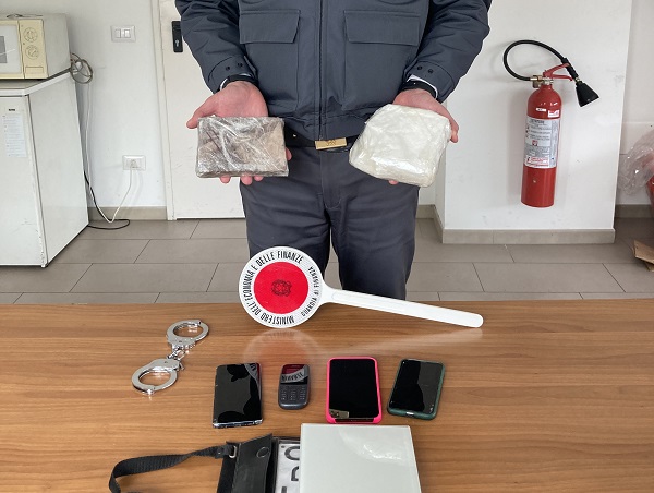 L’autovettura è stata sottoposta a sequestro unitamente ad un bilancino di precisione e 4 telefoni cellulari.