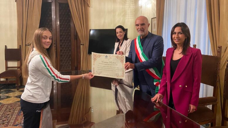 In Comune, a Pescara, riconoscimento a Enrica Paolini per il terzo posto ai Campionati Assoluti di Ginnastica ritmica svolti a Folgaria