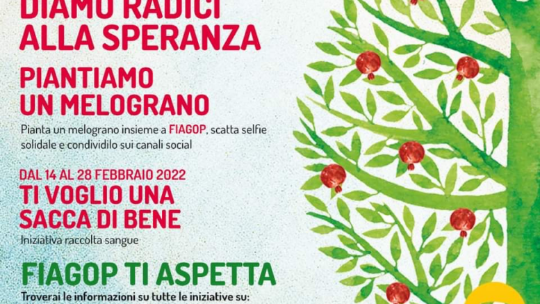 - 15 febbraio “DIAMO RADICI ALLA SPERANZA. PIANTIAMO UN MELOGRANO” – terza edizione dell’iniziativa green e solidale di messa a dimora di un melograno, il cui frutto è il simbolo della federazione. Le norme anti Covid di fatto hanno impedito, per AGBE, le cerimonie di piantumazione dei melograni nelle aree verdi pubbliche, all’ingresso degli ospedali o nelle Case Alloggio.