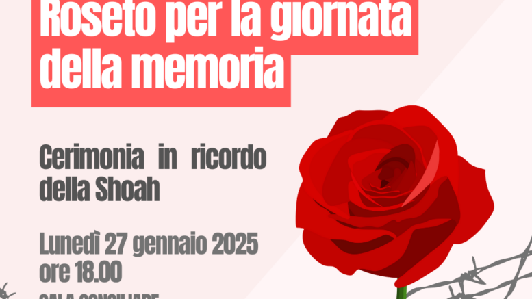 In occasione del Giorno della Memoria, dedicato alla commemorazione delle vittime della Shoah, l’Amministrazione Comunale di Roseto degli Abruzzi rende omaggio ai suoi concittadini deportati nei lager nazisti durante la Seconda Guerra Mondiale.