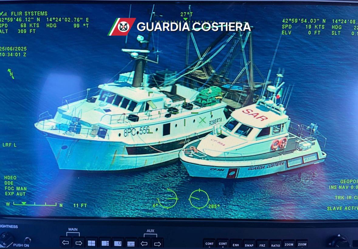 Un peschereccio impegnato nella normale attività di pesca ha rischiato di affondare al largo della costa di Giulianova