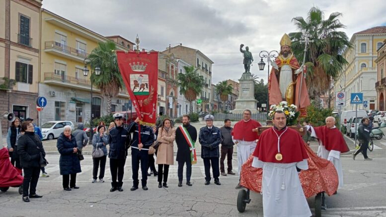 Poco dopo le 11.30, la statua ha oltrepassato l’ingresso nord della chiesa di San Flaviano e, su un baldacchino di fiori e broccato, ha iniziato la sua lenta marcia devozionale. Lo anticipavano la banda di Ancarano, il parroco don Enzo Manes e, dalla diocesi di Acri, don Flaviano Timperi, che alle 10.30 aveva celebrato la messa in duomo. La processione, prima di completare il percorso, ha sostato sul belvedere per la benedizione solenne della città.