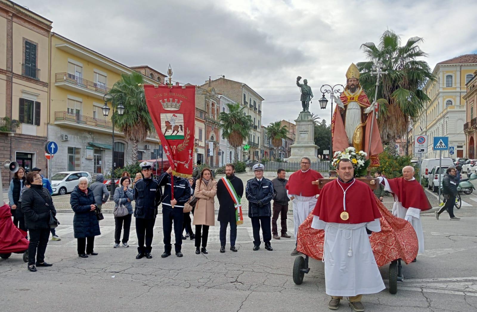 Poco dopo le 11.30, la statua ha oltrepassato l’ingresso nord della chiesa di San Flaviano e, su un baldacchino di fiori e broccato, ha iniziato la sua lenta marcia devozionale. Lo anticipavano la banda di Ancarano, il parroco don Enzo Manes e, dalla diocesi di Acri, don Flaviano Timperi, che alle 10.30 aveva celebrato la messa in duomo. La processione, prima di completare il percorso, ha sostato sul belvedere per la benedizione solenne della città.