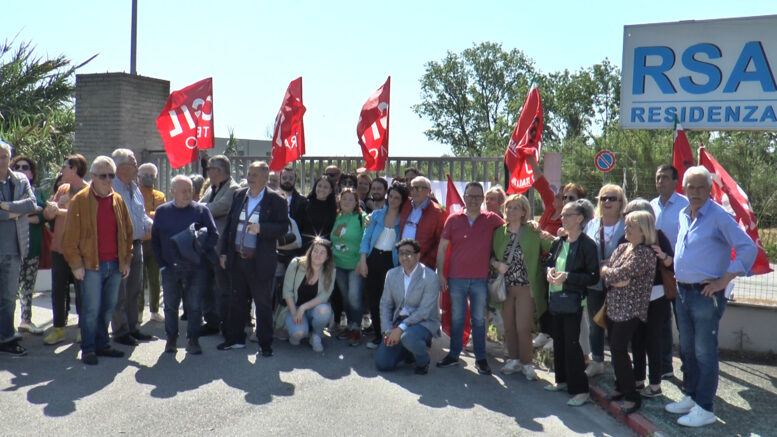 A Giulianova sit in di protesta degli ex dipendenti e dei rappresentanti sindacali della Cgil davanti alla Rsa del bivio di Bellocchio