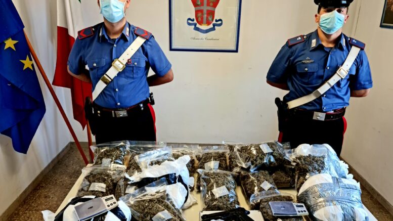 All’interno di uno sgabuzzino i carabinieri di Giulianova hanno trovato ben 10 chili di marijuana, nascosti in un grosso borsone e in un bidone di plastica, oltre al materiale per la pesatura ed il confezionamento delle singole dosi da spacciare. Valore di mercato della “roba” almeno 200 mila euro. Arrestato albanese, 23enne, da tempo residente a Teramo.