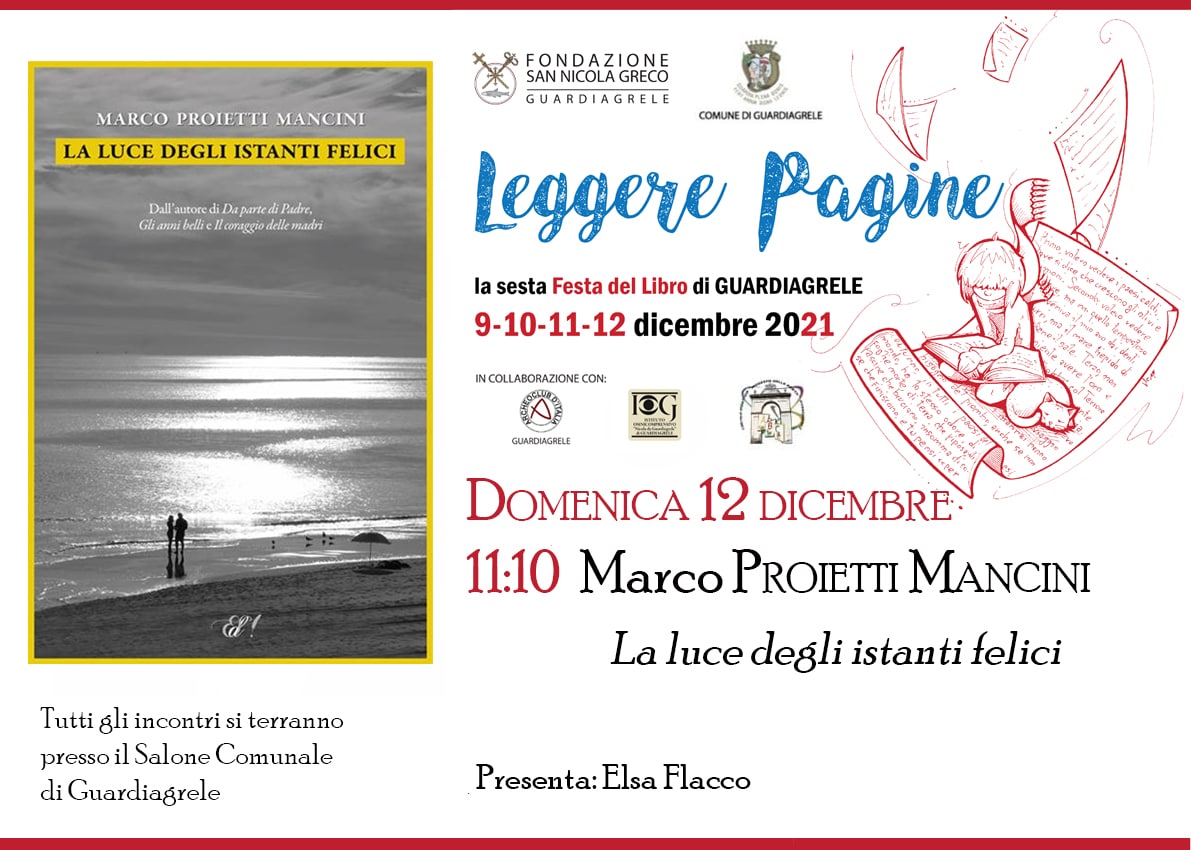 progetto coinvolgendo il pubblico insieme a Silvia Garzarella e Marco Proietti Mancini, scrittori che a seguire presenteranno i loro rispettivi lavori: alle 11:10 La luce degli istante felici (Edizioni della Sera), con l’autore Marco Proietti Mancini che ne parlerà con Elsa Flacco.