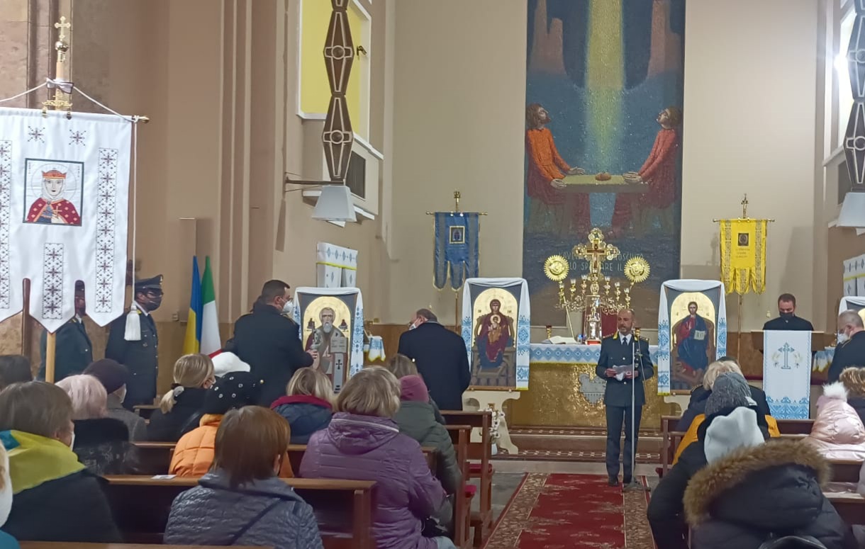 Tra i mosaici, gli affreschi e i dettagli decorativi, l’iconografia religiosa, che trasuda un messaggio spirituale e intellettuale nell’arcano splendore della liturgia, accoglie e si fa tutt’uno con scatoloni contenenti generi di prima necessità per i profughi ucraini. Pacchi di aiuti che il Comandante Provinciale, il Colonnello t.ST Antonio Caputo, consegna a Don Dimitri e al suo gruppo di volontari provenienti da ogni parte del mondo, insieme ad una donazione in denaro raccolto tra le Fiamme Gialle pescaresi. “Grazie ai finanzieri per la loro immensa generosità”, dice lo stesso Don Dimitri. “Grazie anche ai miei ragazzi, fratelli, che hanno capito che camminando uniti contro le ostilità, è possibile intonare insieme un inno alla pace”.