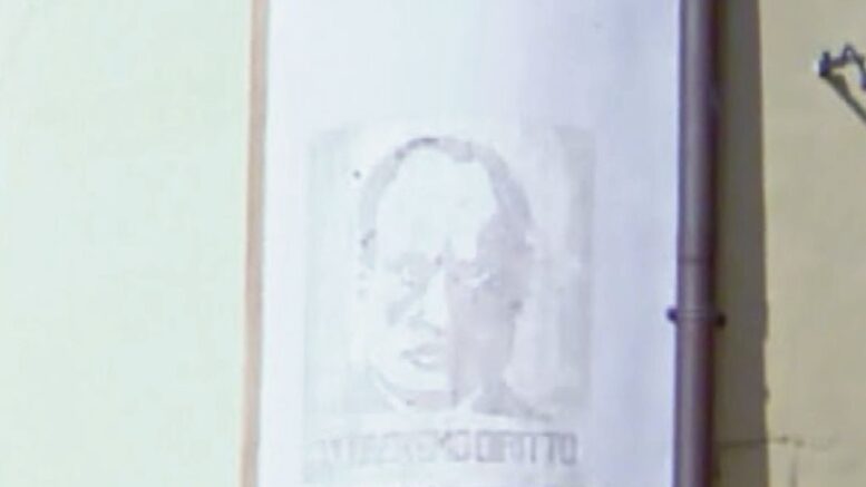 Non è raro imbattersi in veri e propri abbagli, quando si ha a che fare con reperti del passato, anzi, è quasi fisiologico, cose che possono accadere, insomma, basti pensare al serrato dibattito, anche nelle aule del tribunale, sull’autenticità del Guerriero di Capestrano. Tuttavia, se il Comune di Moscufo dice il vero, quando afferma che l’effigie di Benito Mussolini, all’angolo di due vicoli del centro storico, è sotto il vincolo della Sovrintendenza quale reperto storico del Ventennio e che qualsiasi forma di deturpazione andrebbe fermamente condannata, dovrebbe informarsi meglio, perché quell’effigie è essa stessa una forma di deturpazione e a sostenerlo, con cognizione di causa, è Davide Puca, ricercatore universitario, ma soprattutto nipote dell’autore di quella effigie: