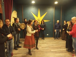 Nella sede dell’associazione CuntaTerra, a Brecciarola (Chieti), la troupe di Rete8 ha incontrato gli insegnanti e gli allievi di questa significativa operazione di recupero della cultura popolare: Marcello Sacerdote, direttore artistico, Daniela Giammarco, presidente, Alessandro Salerno, maestro di tamburi e danze, e Chiara Spina, maestra di danze del centro-Sud.