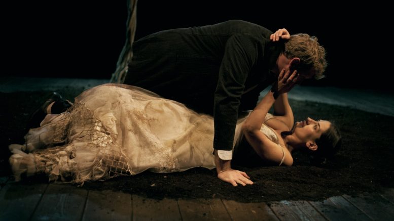La scelta di rappresentare questo necessario e voluto distacco da Dio ha poi fatto nascere l’idea di utilizzare delle corde tese al cielo; ecco che Adamo ed Eva sono diventati allora nel mio immaginario marionette che scegliendo il libero arbitrio trovano sì la vita, ma anche la sofferenza ed il sacrificio, come una qualsiasi coppia umana. Si scoraggiano, e si accontentano inizialmente della passione quando c’è, poi della normalità, dell’abitudine allo stare assieme, perdendo la memoria di ciò che è alla base dell’amore. Nodo di regia diventa quindi il momento in cui i due personaggi sanciscono il definitivo allontanamento da Dio. La coincidenza di questo momento con un nodo drammatico fondamentale nella storia della coppia mi ha persuaso a far entrare in gioco, dopo la terra, un nuovo elemento per me fondamentale in questo spettacolo, l’acqua, elemento naturale, antitetico a tutti i costrutti di parole, sentimenti e rapporti di causa-effetto che appartengono alle vicende dei due personaggi. Quindi il fango, perché siamo fatti di fango e al fango torneremo.