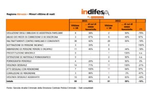 La Fondazione Terre des Hommes ha diffuso i nuovi dati sui reati a danno di minori commessi in Italia nel 2022: a fronte dell’aumento nazionale del 10%, l’Abruzzo è in controtendenza a -18%
