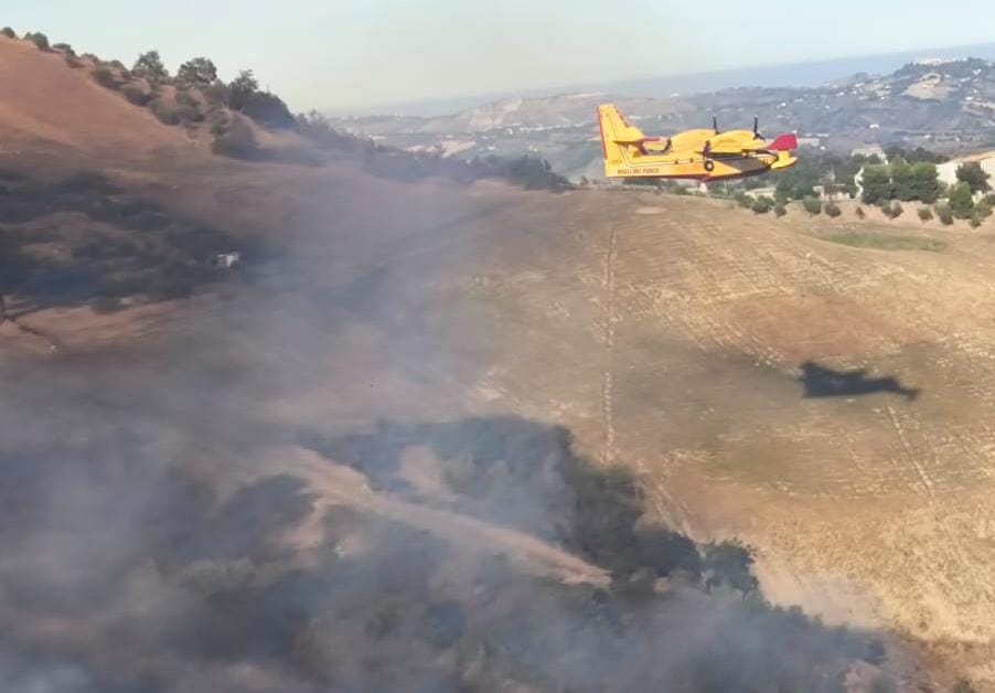 Dalla tarda mattinata di ieri vigili del fuoco del Comando di Teramo impegnati nella zona di Casale Lucia nei pressi di località Rapino, nel comune di Teramo per un vasto incendio di macchia mediterranea. Sul posto sono intervenuti anche gli elicotteri Erickson S-64 “Chocise” e “Drago 158” dei vigili del fuoco e il Canadair “CAN-31”