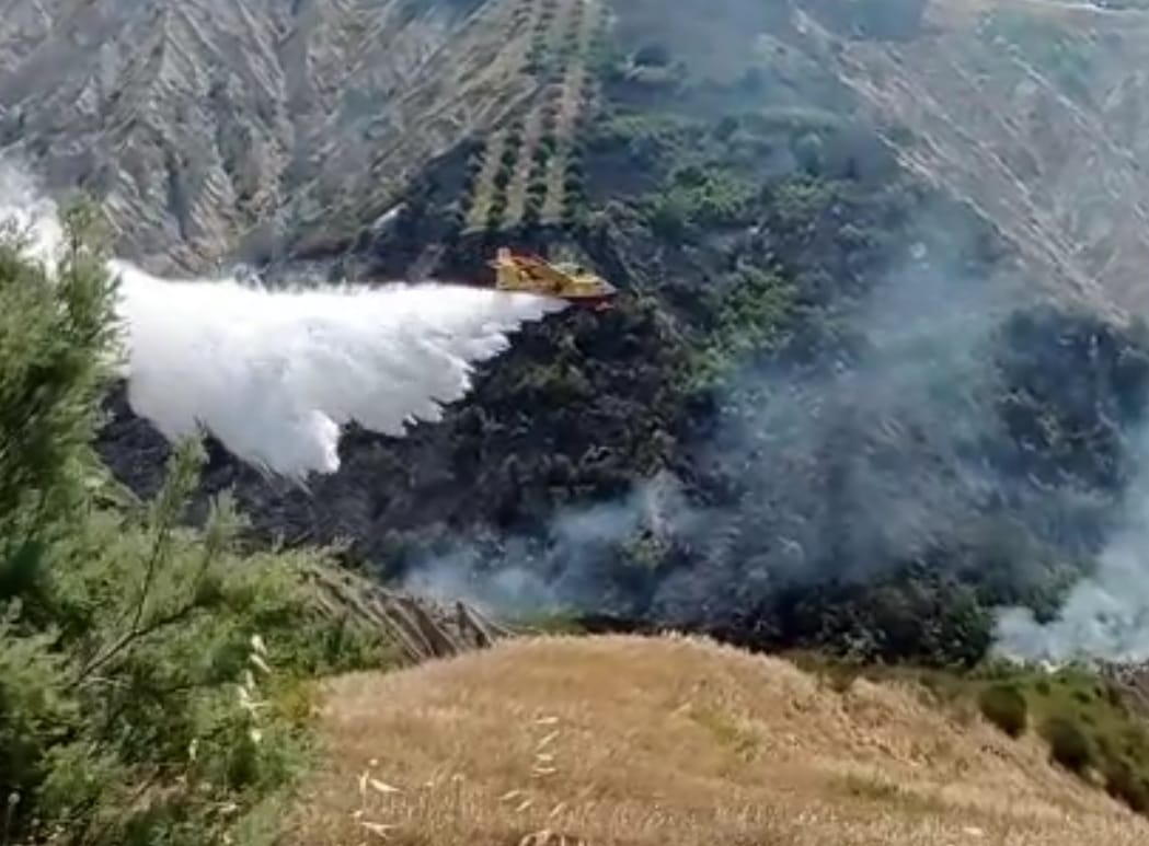 Otto ettari di terreno sono andati in fiamme nella Riserva dei calanchi di Atri. Sul posto i vigili del fuoco con squadre di terra e canadair