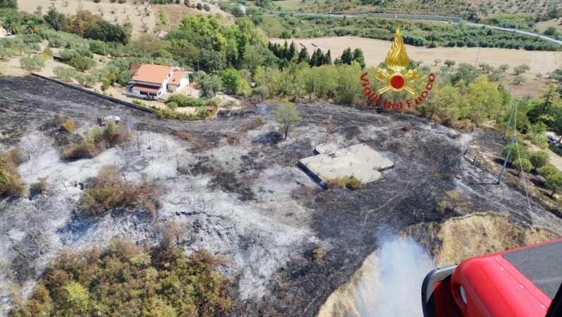 Rogo minaccia case a Spoltore, elicottero in azione. Vigili del Fuoco al lavoro nella zona dell’ex fornace