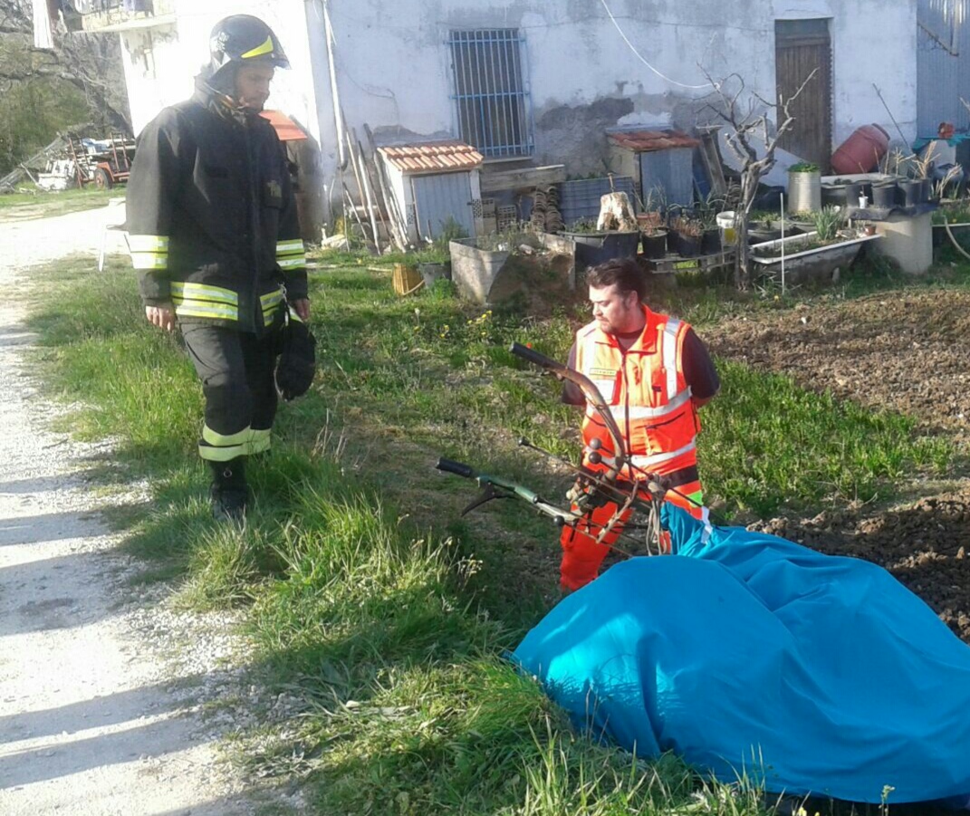 Una squadra dei vigili del fuoco è intervenuta per un intervento in via del Vecchio Mulino, a Villa Lempa di Civitella del Tronto, per un incidente mortale. Nell’incidente è rimasto coinvolto un uomo di 69 anni, che con una motozappa stava fresando un terreno agricolo adiacente la sua abitazione. L’uomo, per cause in corso di accertamento da parte dei Carabinieri, ha perso il controllo del mezzo agricolo che lo ha investito, ferendolo mortalmente. L’autorità giudiziaria ha autorizzato la rimozione del corpo, che è stato appena recuperato da parte di un’agenzia di pompe funebri, con la collaborazione dei vigili del fuoco. Sul posto è intervenuto anche personale sanitario del 118 di Teramo, che non ha potuto far altro che constatare la morte dell’agricoltore.