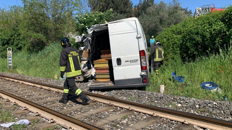 e la Polizia Ferroviaria, oltre ai Vigili del Fuoco per la rimozione del furgone, colpito nella parte posteriore, e i tecnici di Rfi.