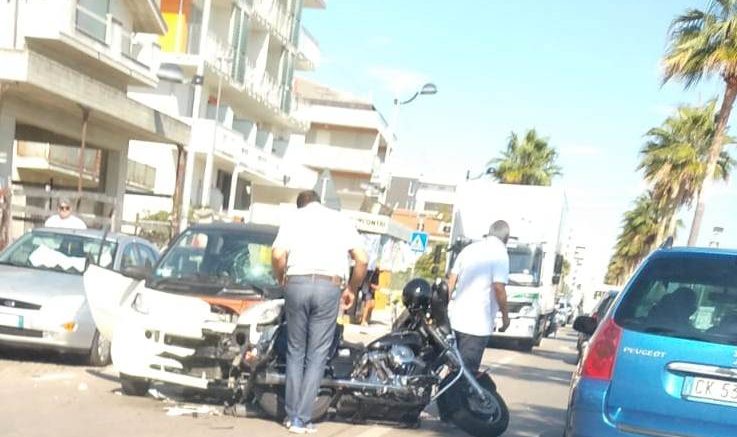 Incidente a Montesilvano sul lungomare oggi 4 settembre. Scontro tra auto e moto, il cui conducente finisce in ospedale.