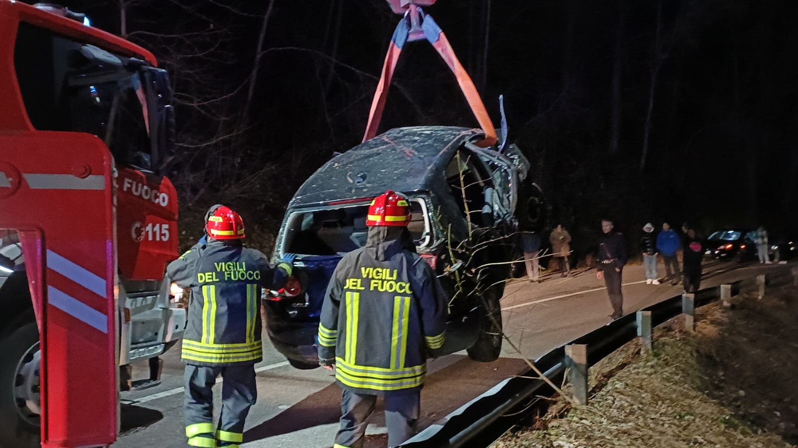 Intorno alle 19:40, una squadra dei vigili del fuoco di Teramo e una di Ascoli Piceno, con cinque automezzi operativi, di cui uno dotato di attrezzature SAF (Speleo Alpino Fluviale), sono intervenute nel comune di Valle Castellana, al Km 6 della strada provinciale SP49, a seguito di un incidente stradale