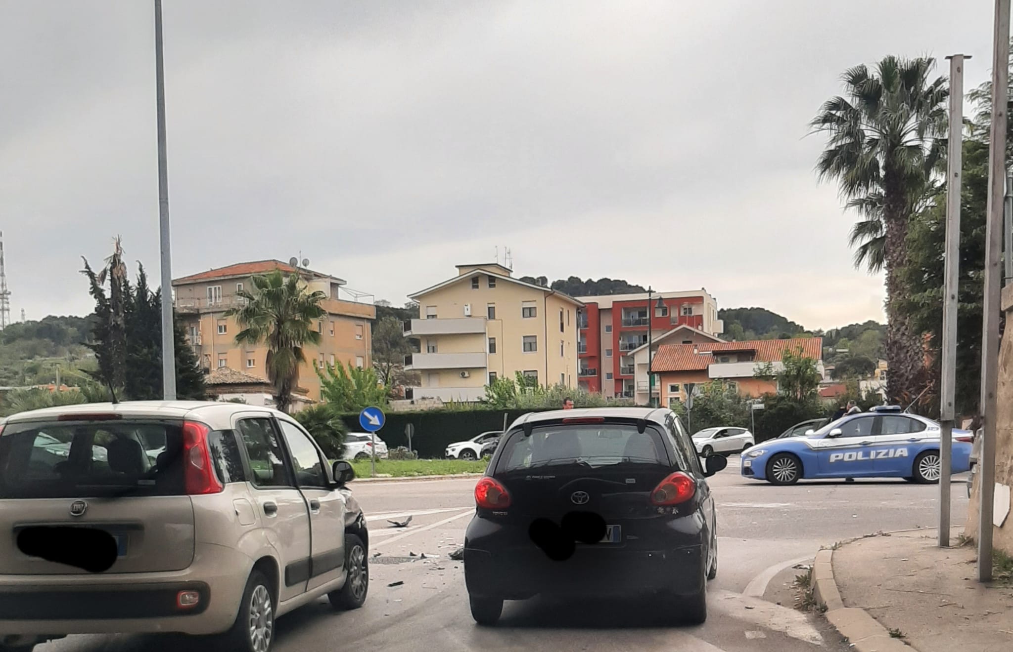 Nel tentativo di fuggire, evitando la rotonda, il suv ha travolto – danneggiandola – a tutta velocità una Fiat Panda, con una signora alla guida e un bambino sul posto del passeggero (era l’orario di uscita delle scuole del quartiere). Per fortuna, per entrambi solo un grande spavento senza conseguenze più serie.