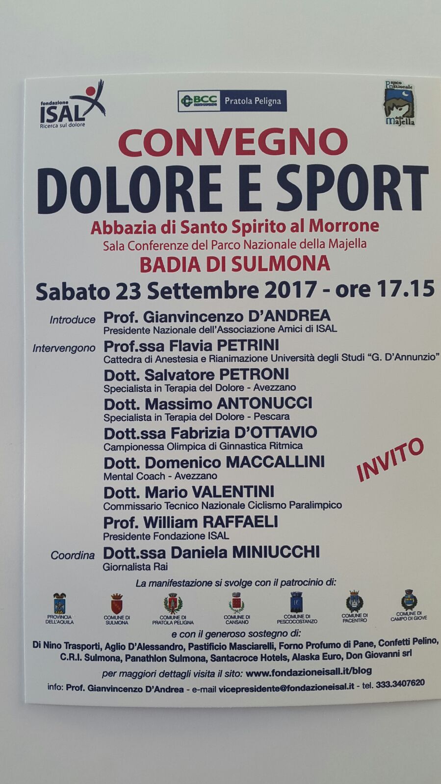NEL POMERIGGIO DI SABATO 23 si svolgerà un convegno sul tema “Dolore e sport” alla Badia di Sulmona
