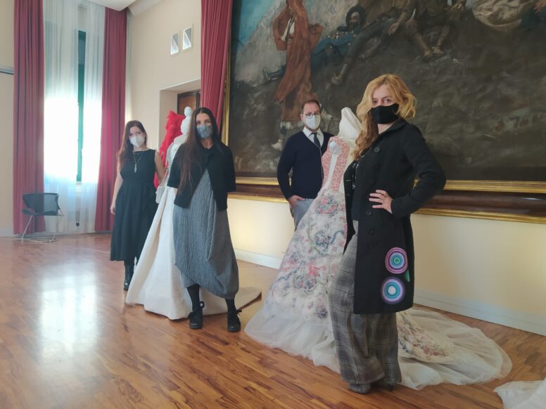 E, dopo attenti studi sui tessuti, sulle tecniche “storiche” di realizzazione e sull’utilizzo di nuove tecnologie su questi veri pezzi d’arte e di storia sono nati i primi prototipi altamente sostenibili: innestano ritagli di tessuto ad impreziosire abiti come gioielli, avvolgono il corpo piegati, senza ritagli, ispirano nuove idee come borse, e “portamascherina”, piegano le coperte senza tagliarle, per un uso misto, scaldano la sposa d’Inverno, valorizzano gli scarti, tutti preziosi. È questa è la novità, l’uso della dote tradizionale per farne capi d’alta moda ma mantenendone le sue caratteristiche originali.