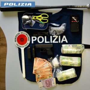 Successivi accertamenti sull’arma da fuoco hanno permesso di stabilire che era il provento di un furto in abitazione compiuto anni addietro in un’altra in provincia. L’uomo è stato arrestato in flagranza di reato per detenzione ai fini di spaccio di sostanza stupefacente del tipo cocaina, detenzione abusiva e ricettazione dell’arma da fuoco.
