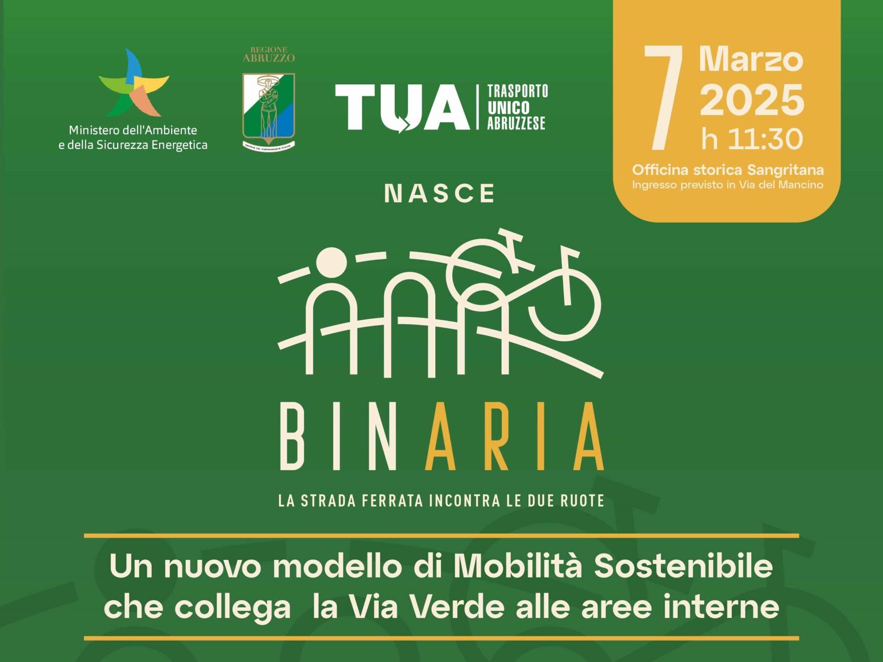Alla presentazione è intervenuto anche Marco Marsilio, presidente della Giunta regionale dell’Abruzzo. L’evento si è svolto nei locali dell’ex officina storica della Sangritana. Binaria collegherà la via Verde alle aree interne.
