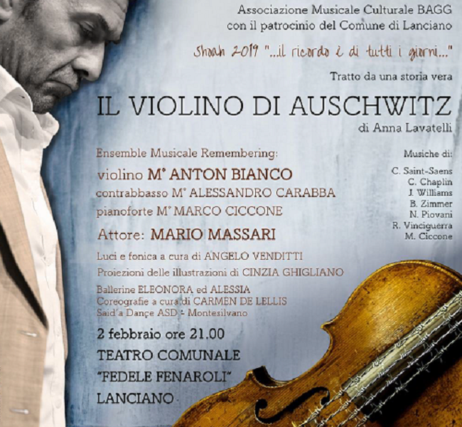 Il Teatro Comunale “Fedele Fenaroli” di Lanciano, ospiterà il 2 Febbraio con inizio alle ore 21,00 lo spettacolo dal titolo “Il violino di Auschwitz … tratto da una storia vera” di Anna Lavatelli con Illustrazioni grafiche realistiche di Cinzia Ghigliano Interlinea Le rane Edizioni 2018.