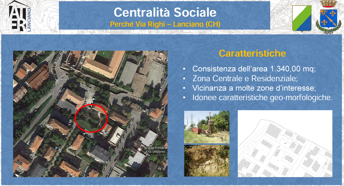 L’area è di 1.340,00 mq, in zona centrale e residenziale, vicina a molte zone d’interesse, e ha subito presentato idonee caratteristiche geo-morfologiche. L’importo complessivo di € 1.721.542,06 è stato finanziato dalla Giunta Regionale, Dipartimento Territorio Ambiente Servizio Edilizia Sociale e Scolastica e comprenderà 15 alloggi categoria catastale A/2 (n° 10 alloggi da circa 75 mq e n° 5 da circa 50 mq);