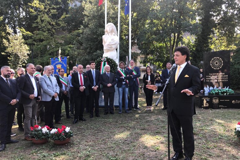 A scoprire il memoriale, tra applausi e commozione, è stato il musicista Santino Spinelli, presidente dall’associazione culturale Them Romanò, intorno a lui scolaresche, sindaci, autorità provenienti da Croazia, Spagna e Romania e ospiti giunti da 26 nazioni che successivamente hanno partecipato, al Teatro Fenaroli, alla serata finale della 30° edizione del concorso artistico internazionale Amico Rom, organizzato in collaborazione con Ucri, Unione delle Comunità Romanès in Italia.