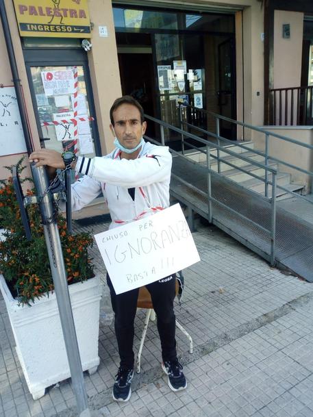 “Chiuso per ignoranza. Basta”: questo il cartello che Vicenzo Di Rado, 49 anni, di Lanciano, si è appeso al petto. Una palestra che gestisce con la moglie istruttrice a Castel Frentano. Di Rado in oltre 25 anni di attività ha anche svolto atletica e allenato diverse società di calcio. La sua provocazione è stata accolta da tutti gli altri proprietari di palestre e centri sportivi di Lanciano e comuni limitrofi che si ritroveranno a manifestare giovedì mattina, alle 11, in piazza Plebiscito a Lanciano. Anche molti clienti appoggeranno la protesta.