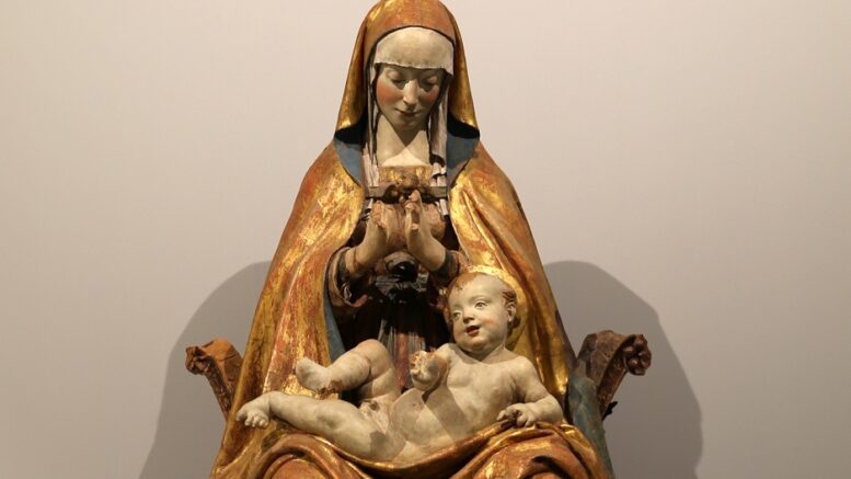Ora la statua della Madonna con bambino attribuita a Saturnino Gatti (1463-1518) è tornata al suo posto. Il sindaco Pierluigi Biondi, la Soprintendente Archeologia Belle Arti e Paesaggio (Abap) per le province di L’Aquila e Teramo Cristina Collettini, e la direttrice delegata del Munda Federica Zalabra, hanno effettuato l’ultimo sopralluogo a conclusione delle operazioni di posizionamento della statua su una base antisismica finanziata dal Comune, all’interno della nicchia nell’altare destro del transetto. Il restauro, promosso e finanziato dal Munda, ha visto la rimozione di vernici e ritocchi alterati e la stuccatura di fessure e fenditure della terracotta. Le attività propedeutiche al complesso intervento di ricollocamento sono state coordinate dalla Soprintendenza e dal Munda, mentre le complesse fasi di ricollocamento sono state seguite dai tecnici del Comune dell’Aquila, sotto la sorveglianza dei funzionari della Soprintendenza.