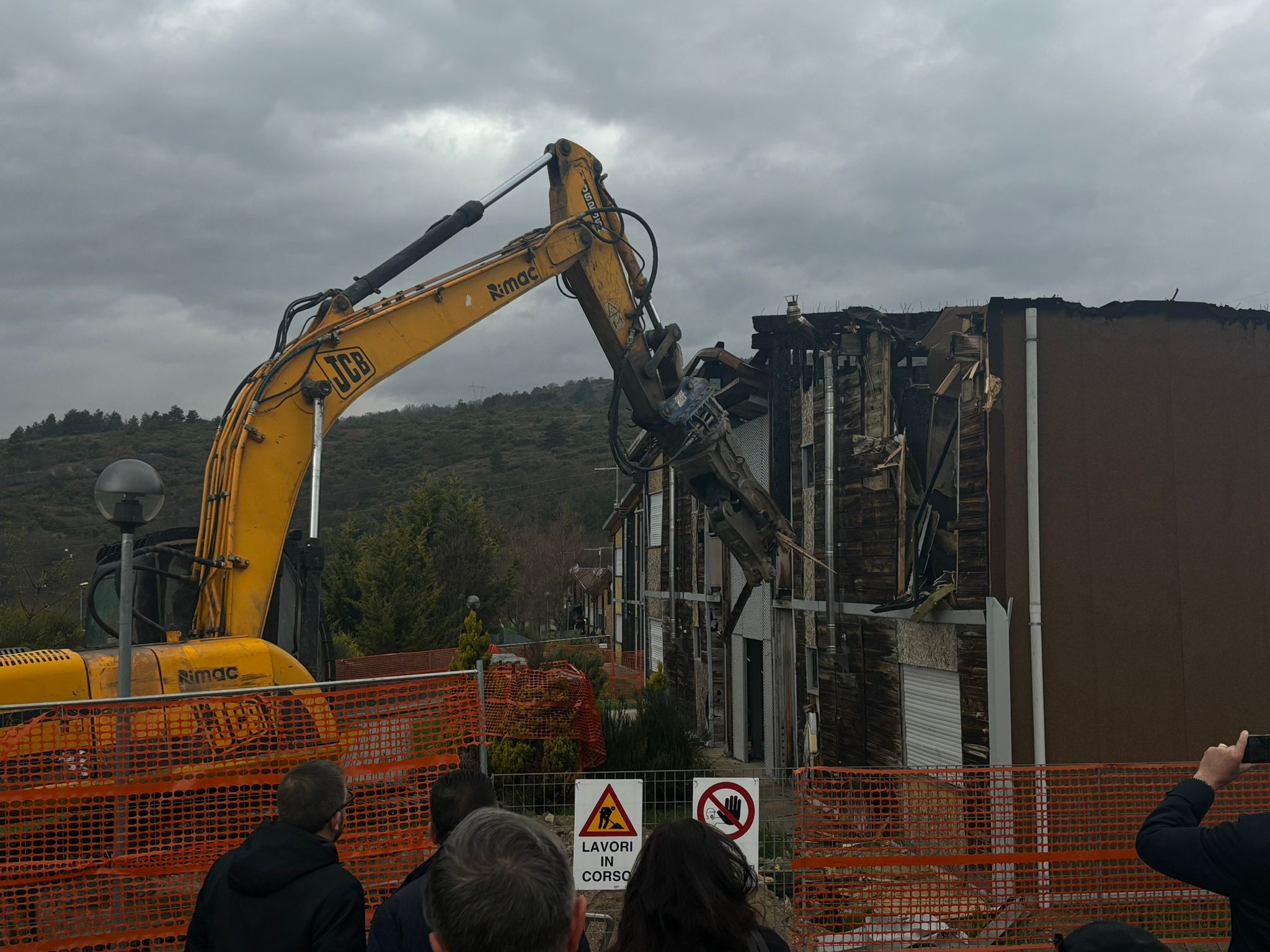Iniziata oggi la demolizione dei Map di San Gregorio, frazione alle porte dell’Aquila dove il comune ha affidato ad una ditta i lavori per eliminare quei Map danneggiati colpiti dagli incendi che non avrebbe avuto senso ricostruire.