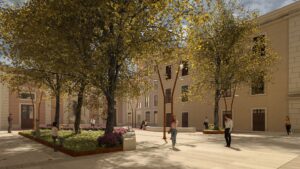 Per quel che riguarda i lavori il prato di piazza Regina Margherita recintato e che occlude la piazza verrà aperto e scomposto per consentire il transito dei pedoni e la vista sui palazzi e sul tritone. Il progetto di riqualificazione di largo Tunisia propone, con il medesimo linguaggio, una sistemazione dell’aiuola centrale con una seduta continua.