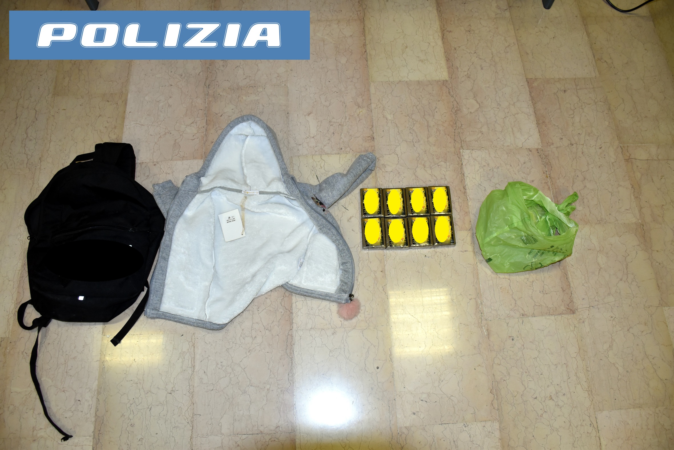 Nello specifico, la Squadra Volante del Commissariato di Pubblica Sicurezza di Avezzano, durante il normale servizio, transitando in una zona semi periferica a sud della città, procedeva al controllo di un giovane che alla vista della pattuglia cercava di eluderlo. Gli agenti, insospettiti da tale atteggiamento, lo raggiungevano e lo identificavano, accertando che era minore e, nella circostanza sentivano un forte odore di stupefacente del tipo “hashish” provenire dallo zaino che il giovane aveva con sé. Invitato a mostrare il contenuto dello stesso, il ragazzo afferrava una felpa mostrandola celermente agli operatori, dichiarando che all’interno dello zaino non vi era altro, però, l’odore avvertito poco prima si accentuava insospettendo ancor più i poliziotti. Toccando la felpa in questione gli agenti si accorgevano che all’interno di essa vi era custodito qualcosa di solido. A quel punto, chiesto di far vedere cosa fosse, il giovane mostrava nr. 8 panetti di sostanza stupefacente, risultante al successivo controllo al narcotest essere del tipo “Hashish”, per un peso complessivo di circa 800 gr. Da ciò ne scaturiva prima una perquisizione personale del minore a seguito della quale veniva rinvenuta la somma di € 390,00 di probabile provenienza dell’attività di spaccio e, poi quella domiciliare che portava al rinvenimento e sequestro di altro denaro, pari ad € 370,00 e di un bilancino elettronico di precisione, rinvenuti entrambi all’interno di un comodino nella camera in uso al giovane. Il giovane veniva accompagnato presso i locali del Commissariato, dove successivamente giungevano i propri familiari unitamente al legale di fiducia. Del tutto veniva data comunicazione al P.M. di turno presso il Tribunale dei Minorenni di L’Aquila, che disponeva l’accompagnamento del giovane arrestato presso il “Centro Prima Accoglienza” del capoluogo, in attesa dell’udienza di convalida.