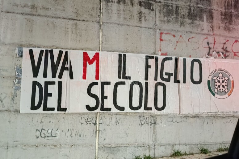 Un manifesto con scritto “Viva M. figlio del secolo” è comparso all’Aquila in uno striscione che reca il logo di CasaPound Italia. Si tratta di una provocazione lanciata in varie città italiana dal movimento politico di estrema destra e di matrice neofascista nelle ultime 48 ore