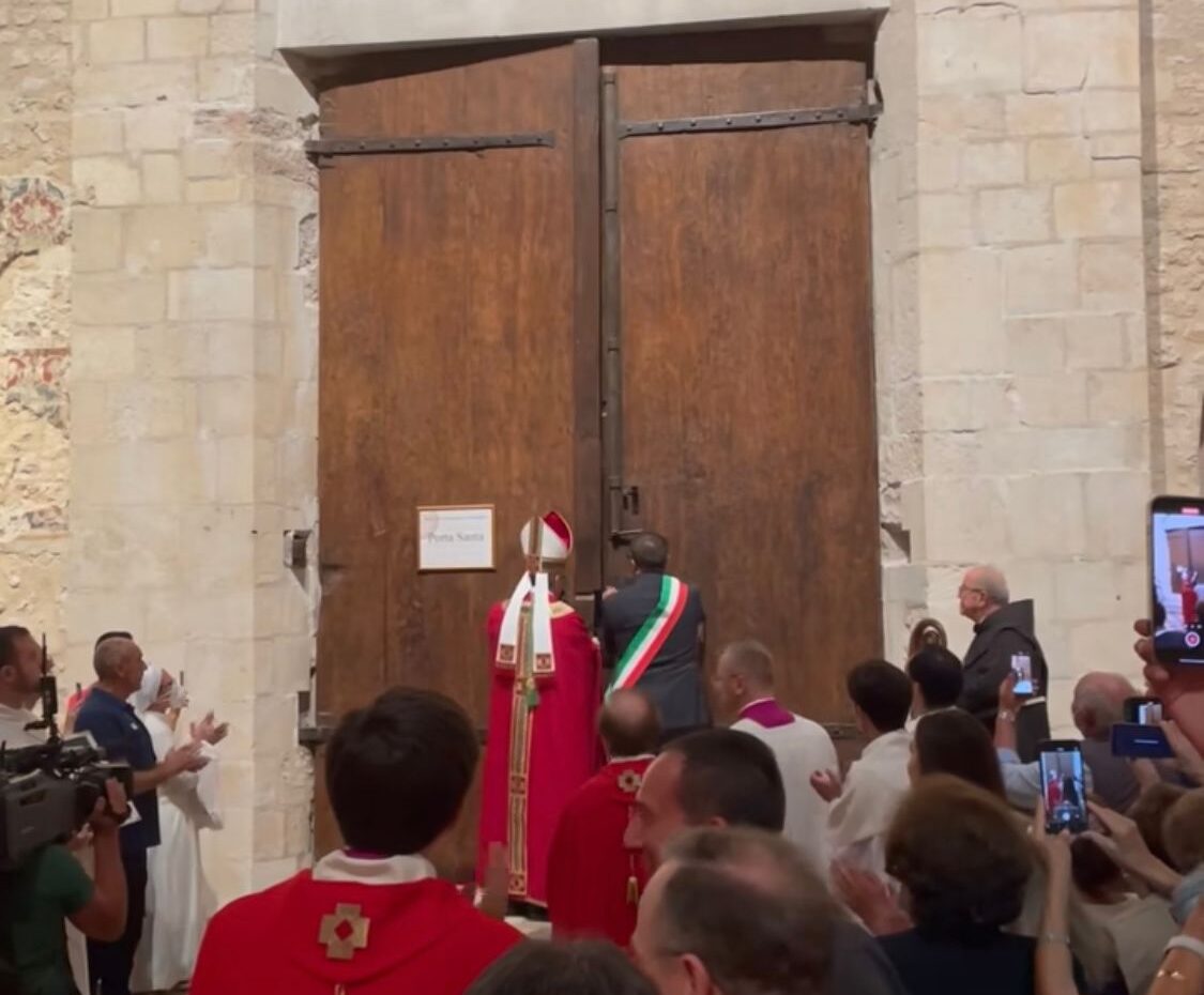 La porta è chiusa ma sarà possibile ottenere l’indulgenza recandosi nella basilica e seguendo le indicazioni della chiesa. E sarà possibile anche per i malati e gli anziani che non possono uscire di casa. Un dono straordinario per il sindaco che lo ha più volte sottolineato nel suo discorso.